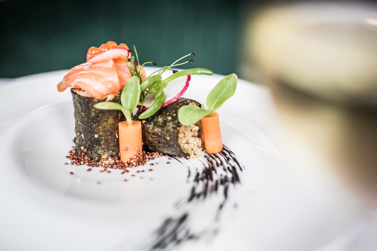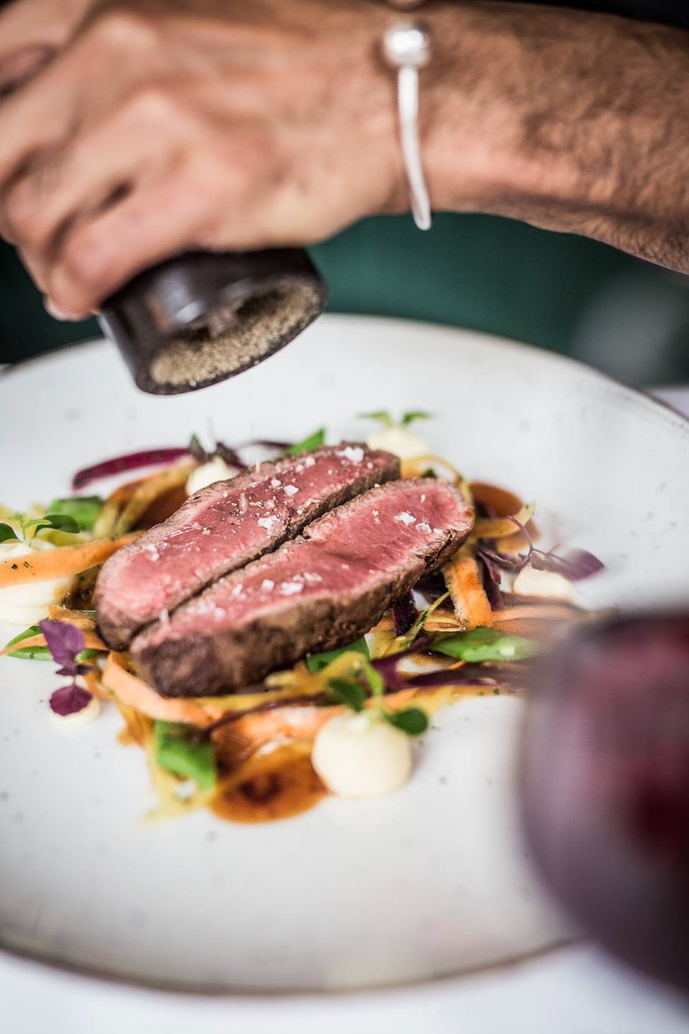 The restaurant serves seasonal vegetables as a speciality but also serves meat and fish.